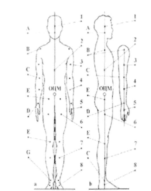 <Антропометрична ><норма ><визначає ><зв'язки ><між ><лінійними ><розмірами ><будь-якого ><сегмента ><тіла ><людини ><і ><його ><ростом. ><З ><цією ><метою ><вводиться ><величина ><"парс" ><(П), ><яка ><дорівнює ><1/56 ><росту ><людини. ><В ><парсах ><вимірюються ><довжини ><і ><поперечини ><всіх ><сегментів ><тіла ><(рис.7.2). ><Цими ><даними ><користуються ><для ><визначення ><довжин ><ампутованих ><кінцівок ><при ><протезуванні ><і ><ортезувані. ><Дані ><про ><величини ><мас ><сегментів ><тіла ><і ><центри ><їх ><розміщення ><зведені ><в ><табл.7.1.>