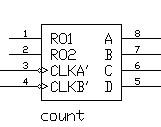 A,B,C,D – виходи лічильника. Для створення 4-розрядного лічильника потрібно вихід А з'єднати з входом CLKB'.