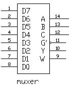 D0-D7 – входи даних. На вихід мультиплексора передається сигнал з того входу даних, адреса якого задана на адресних входах
