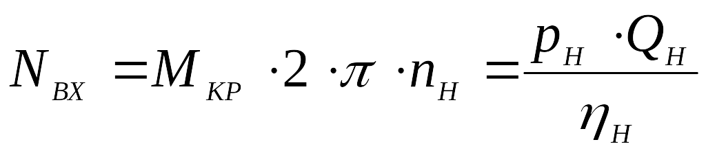 де hон – об’ємний ККД, який характеризує втрати енергії на витоки рідини; hгн – гідравлічний ККД, який характеризує втрати енергії на на місцевих опорах, каналах і робочих вікнах насоса; hмн – механічний ККД, який характеризує втрати енергії на механічне тертя між деталями в насосі;