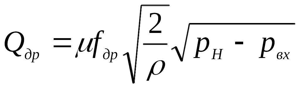 де – коефіцієнт витрати; др – площа робочого отвору дроселя; –густина робочої рідини.