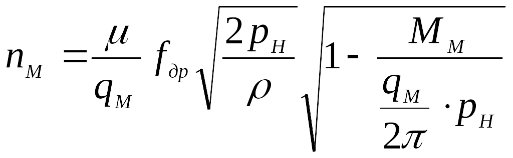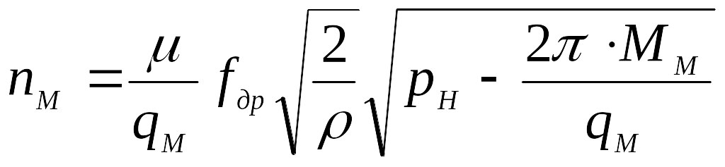 9. По графіку навантажувальної характеристики визначити значення nMx.x для першого випадку відкриття дроселя. Вирахувати Mn по (3.9) для значень ММ, записаних в табл. 3.1, визначити розрахункові значення частоти обертання гідродвигуна nMр по (3.7). Результати розрахунків записати в табл. 3.1.