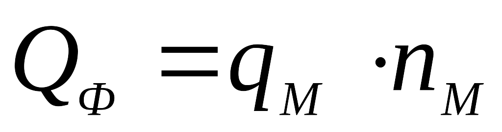 Фактична подача насосу визначається по частоті обертання вала гідромотора: