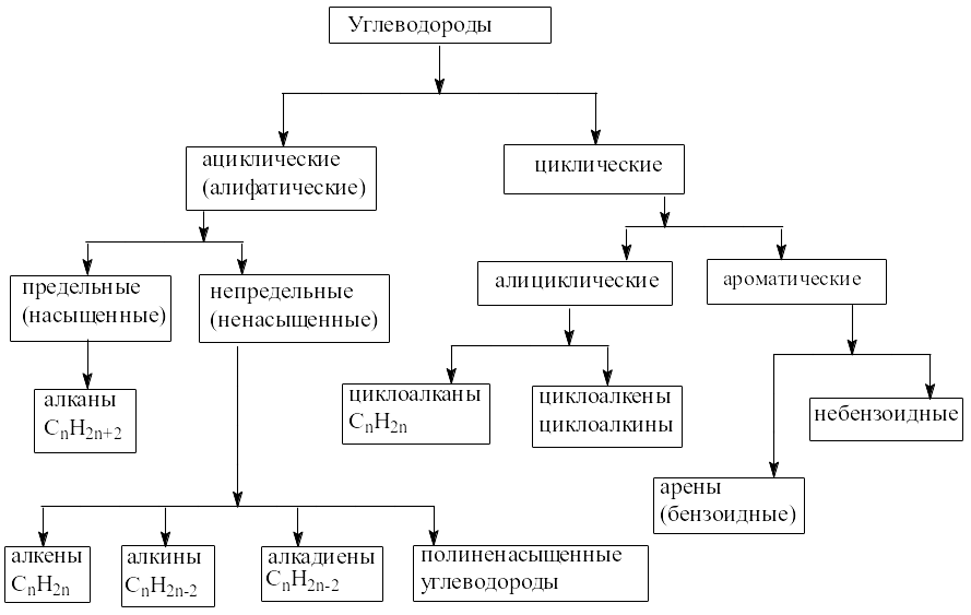 Схема 1. Классификация углеводородов