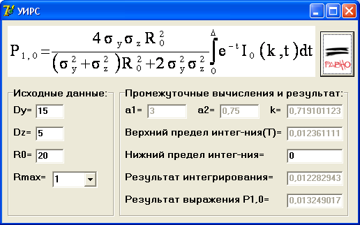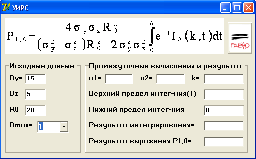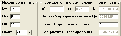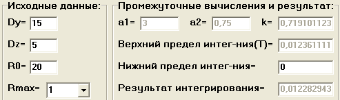 Содержит в себе 3 поля TEditи одно полеTComboBoxдля внесения пользователем исходных значений. В полеDyвносится значение σy, в полеDzвносится значение σz, в полеR0 вносится значениеR0, и в полеRmaxможно либо выбрать предложенные, либо ввести вручную значениеRmax.