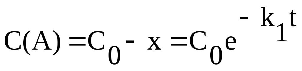 с кинетическим уравнением первой реакции; скорость изменения концентрации вещества А также уменьшается со временем;