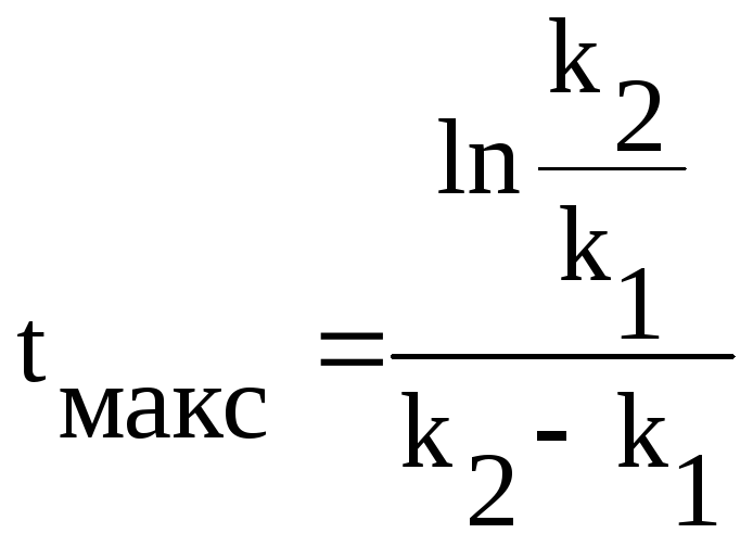Время достижения максимальной концентрации промежуточного вещества b рассчитывается на эвм по уравнению: