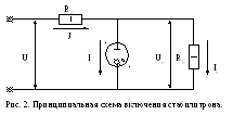 На рис. 2 приведена схема включения стабилитрона в качестве стабилизатора напряжения, где: