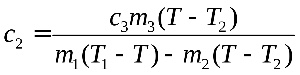 Стаканчик калориметра (внутренний стаканчик) массой т2 с удельной теплоемкостью с2 нагревается от температуры T2 до температуры равновесия T, принимая количество теплоты Q2 : Q2=m2c2(T2 -T) . (9.11)