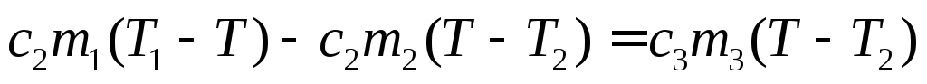 Вода массой т3 с удельной теплоемкостью с3 , налитая в стаканчик калориметра также нагревается от температуры T2 до температуры равновесия T принимая количество теплоты Q3: Q3=m3c3(T3 -T). (9.12)