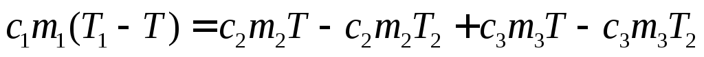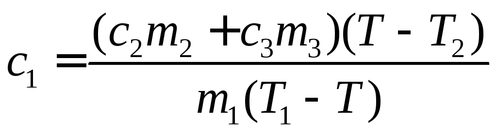 Твердое тело массой т1 с удельной теплоемкостью с1 и нагретое до температуры T1, остывая до температуры равновесия T, отдает количество теплоты Q1, которое можно определить по формуле (9.3):