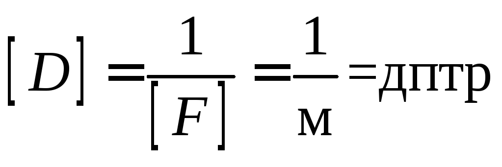 Величина D , обратная фокусному расстоянию линзы, называется оптической силой линзы и измеряется в диоптриях (дптр):
