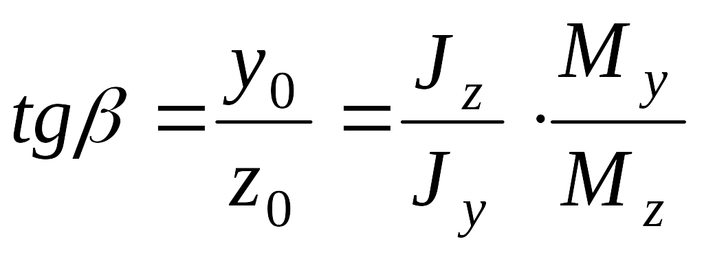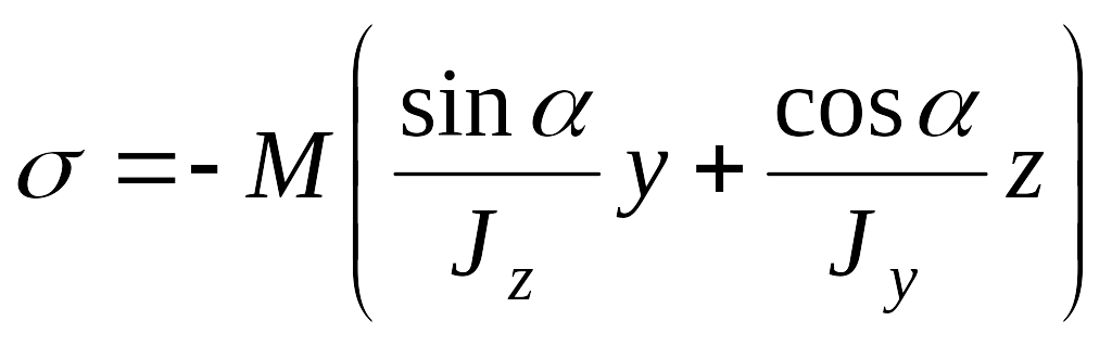 Формула (12.11) была получена из рассмотрения частного случая косого изгиба балки, защемленной одним концом и нагруженной на другом сосредоточенной силой. Тем не менее, эта формула является общей формулой для вычисления напряжений при косом изгибе.